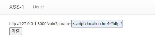 vuln(xss) page 페이지를 통해서 문으로 alert창을 실행한 것을 확인,