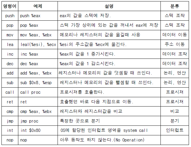 어셈블리어 명령어 정리