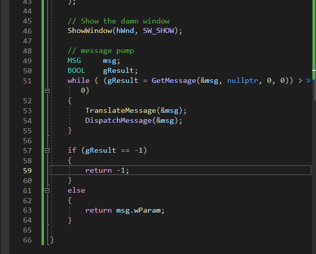 while문 안에 GetMessage가 제대로 동작하면 0이상인 수가 return 이 되어서 gResult에 값이 반환이 된다음