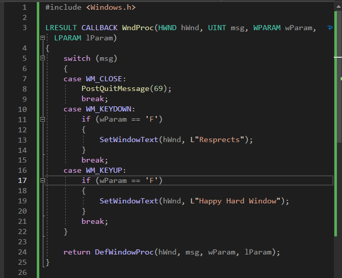 DefWindowProc이기 때문에 정의를 해주고 싶다면은 새롭게 정의를 해주어야한다.