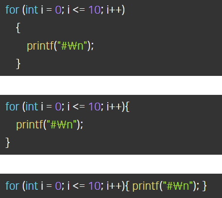 스크래치에서 forever/repeat n 블록을 통해서 수행했었다. 무언가를 계속 반복하는 것이다. c에서는 while/for를 통해서 루프를 구현할 수 있다.