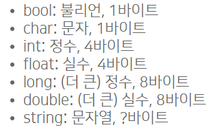 -int 특정 크기까지의 정수 // 약 40억까지 셀 수 있다고 한다.