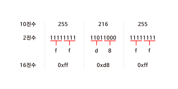 이 숫자들을 표현하는 방식을 RGB(Red, Green, Blue)라고 한다.