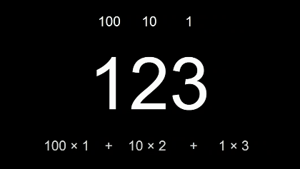우리는 123이라는 숫자를 보고, '백이십삼'으로 읽는다. 1을 백의자리, 2를 십의자리, 3을 일의자리로 보기 때문이다. 이러한 표현에 대한 약속이 있기 때문에 이 과정이 자연스럽다. 10진법에서는 자리수를 10의 거듭제곱으로 표현한다.