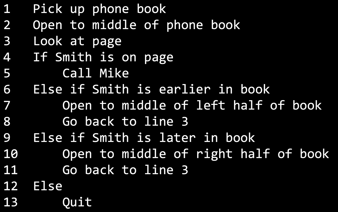 전화번호부에서 Mike Smith를 찾는 일을 한다고 가정해보자.