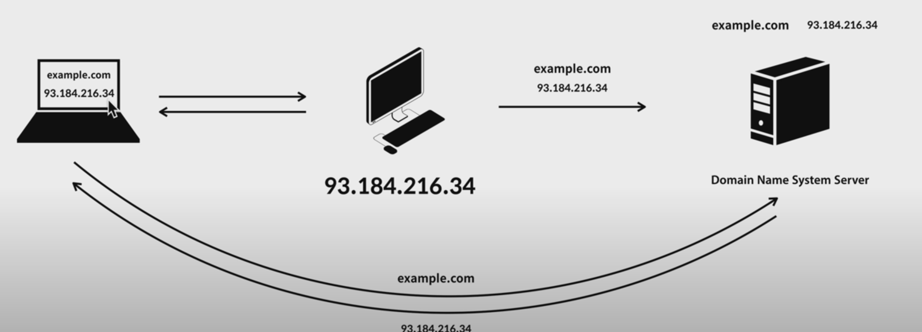 DNS Server에 ip주소가 이것이고, 갖고 싶은 이름(example.com)을 요청한다. 서버는 요청을 받고 이름과 ip주소를 기억한다.