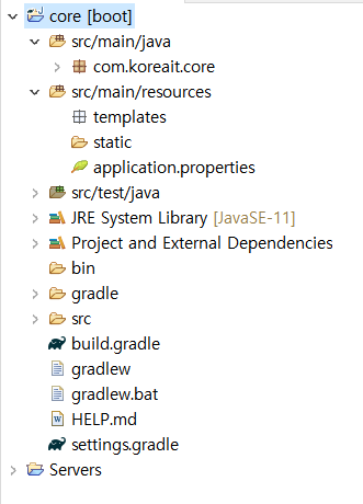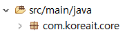 아직 아무것도 만들지 않았는데, com.koreait.core 패키지가 있고 그 안에 core라는 클래스파일이 들어있는데, 이는 우리가 Spring Initializr에서 설정했던 메인 패키지와 클래스이다.