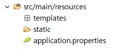 여긴 기본적으로 templates , static , application.properties가 있는데 templates와 static은 view단 즉, html파일이 위치 할 곳이다.