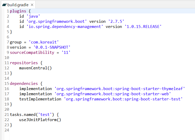 dependencies에 특정 값을 넣으면 네트워크 연결로 jar를 가져와준다.