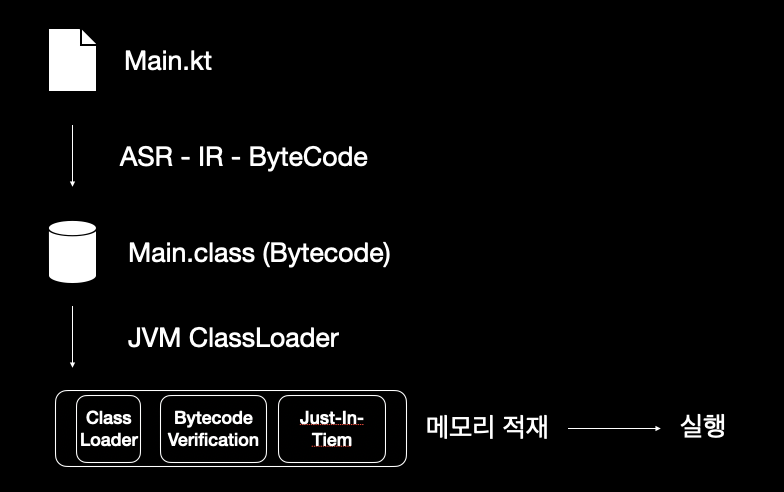 Kotlin의 컴파일 과정은 JVM 위에서 동작하기 때문에 Java 컴파일 과정과 유사합니다.