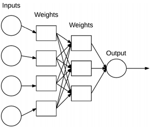 다음으로 넘어가, 구조에 관한 이야기이다. 여러 NN 구조가 있지만 가장 일반적인 구조는 피드포워드 네트워크입니다. 피드포워드라는 용어에서 유추할 수 있듯, 역방향이나 계층간 연결은 안되며 i번째 레이어의 노드에서 i+1번째 레이어의 노드간의 연결만 가능하다.