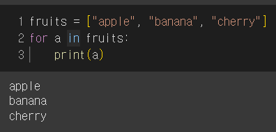 for 뒤의 변수는 기본적으로 리스트를 차례대로 호출하는 함수로 동작함.