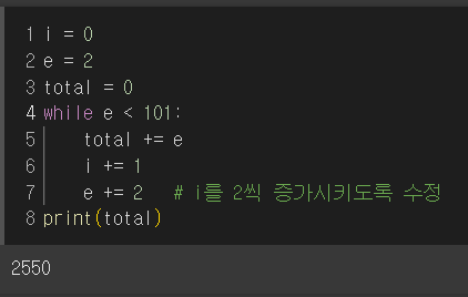 (아래) i 변수가 짝수를 나타내는 e로 바뀌었을 뿐 사실 답은 정해져있었다.