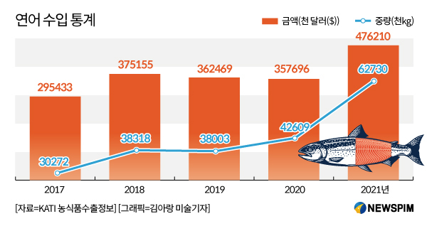 전량 수입하는 연어, 우크라 침공사태에 가격 80% 급등