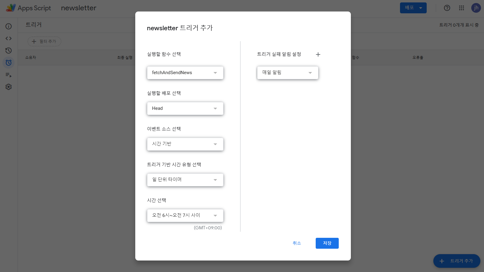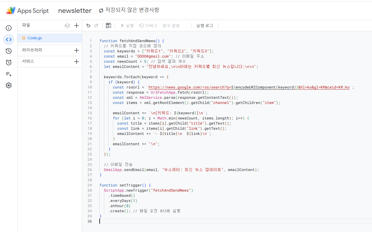 GmailApp.sendEmail(email, "뉴스레터: 최신 뉴스 업데이트", emailContent);