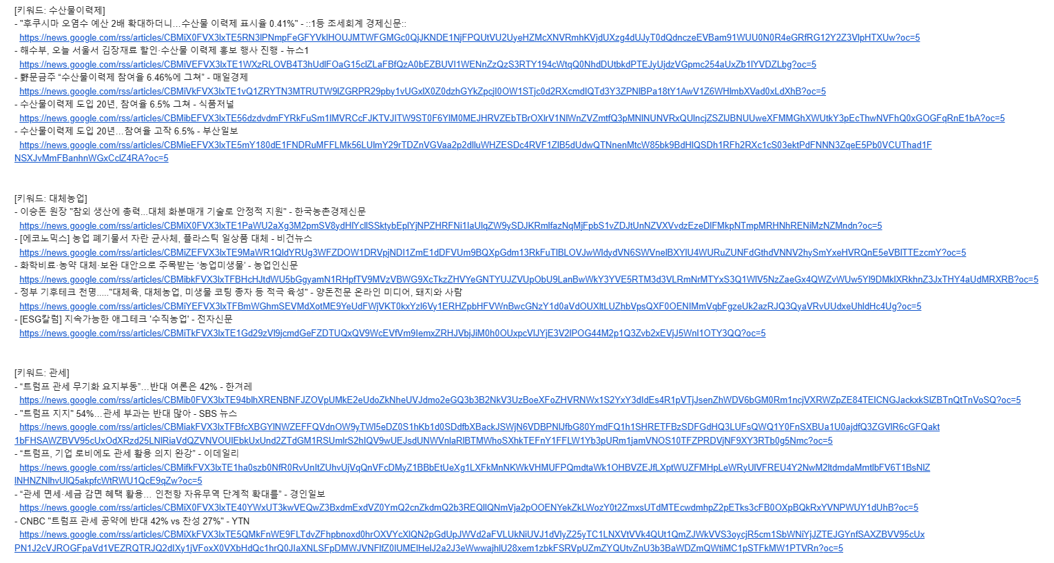 구글 뉴스 RSS의 알고리즘은 최신이고 관련성 높은 콘텐츠 순서로 정렬되어 있다고 함.