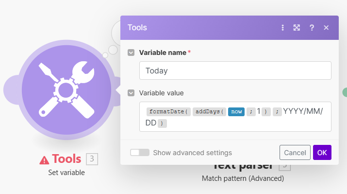 {{formatDate(addDays(now; -1); "YYYY/MM/DD")}}