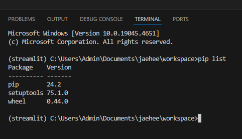 현재 가상환경에서 작업중이므로 그냥 터미널에서 확인하면 된다는 선생님의 말씀이 이제서야 어렴풋이 기억이 났다.