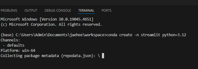 오전에는 miniconda 가상환경을 설정한 후 streamlit 개발 컴포넌트를 간단히 다루어보았다.