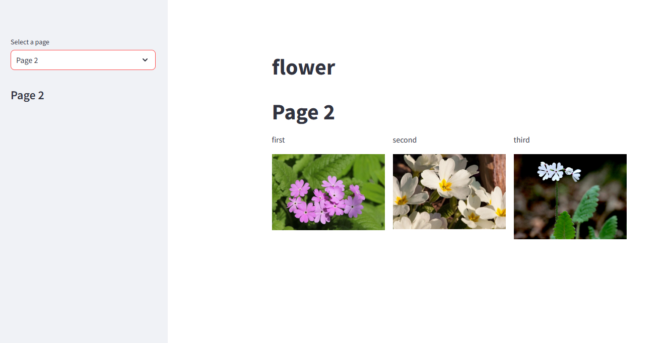 페이지 세개 만들어서 메인페이지에 사진, 페이지 2에 컬럼 3개에 사진, 페이지 3에 탭 3개에 사진 출력하기