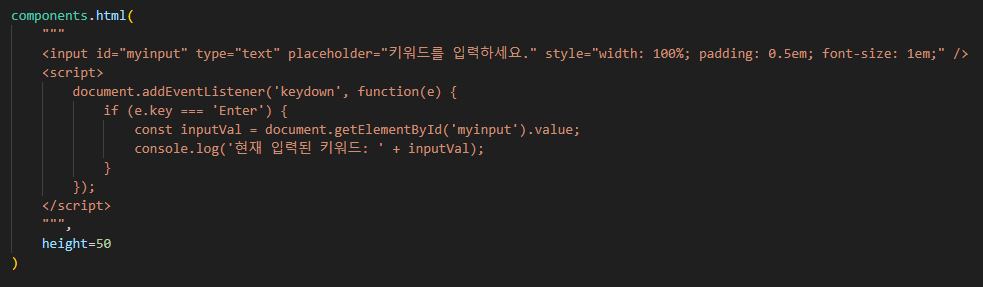 streamlit.components를 써서 인풋폼을 html로 새로 만듦.
