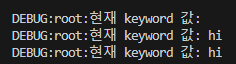 중간에 사용자가 전송 전에 enter키를 눌러서 keyword 변수의 값을 간이 출력해볼 수 있는 코드를 추가했다.