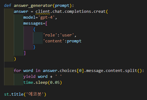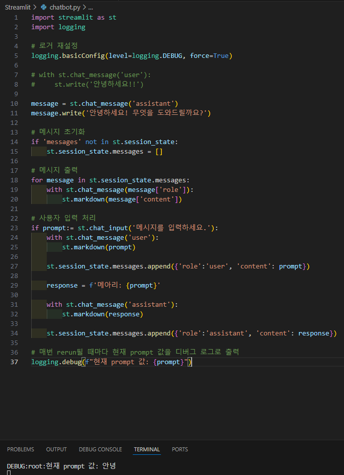 이제 나만의 챗봇으로 좀 더 디벨롭을 진행하였다.