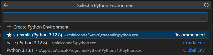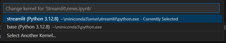 base가 아닌 streamlit 커널에서 작업중인지 확인
