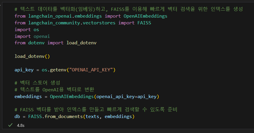 faiss-cpu : 벡터 검색 라이브러리, facebook AI 연구팀에서 개발