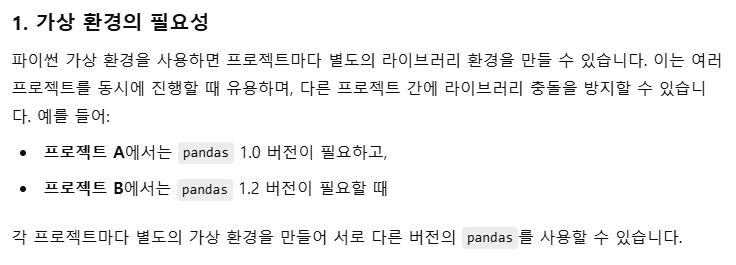 가상환경에서 작업하면 좋은 점 : 의존성 (다른 버전 등) 관리에 용이