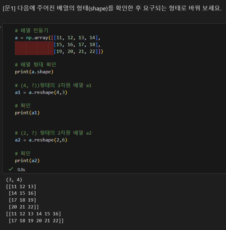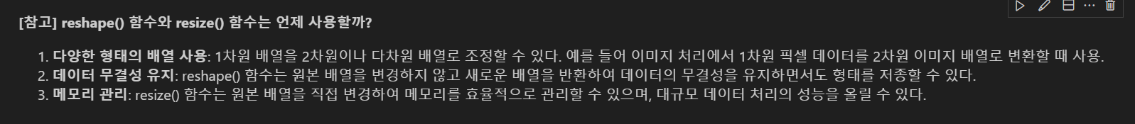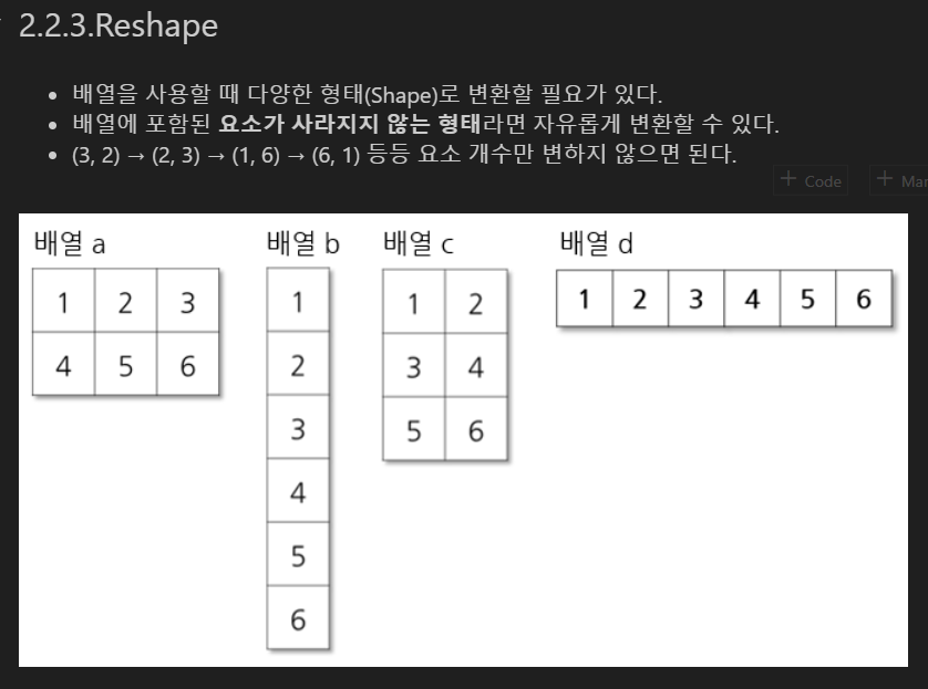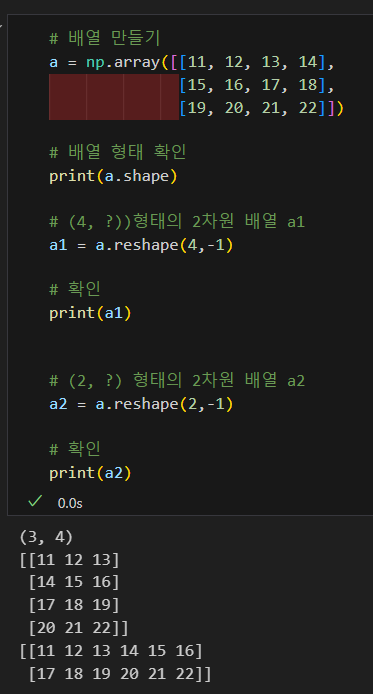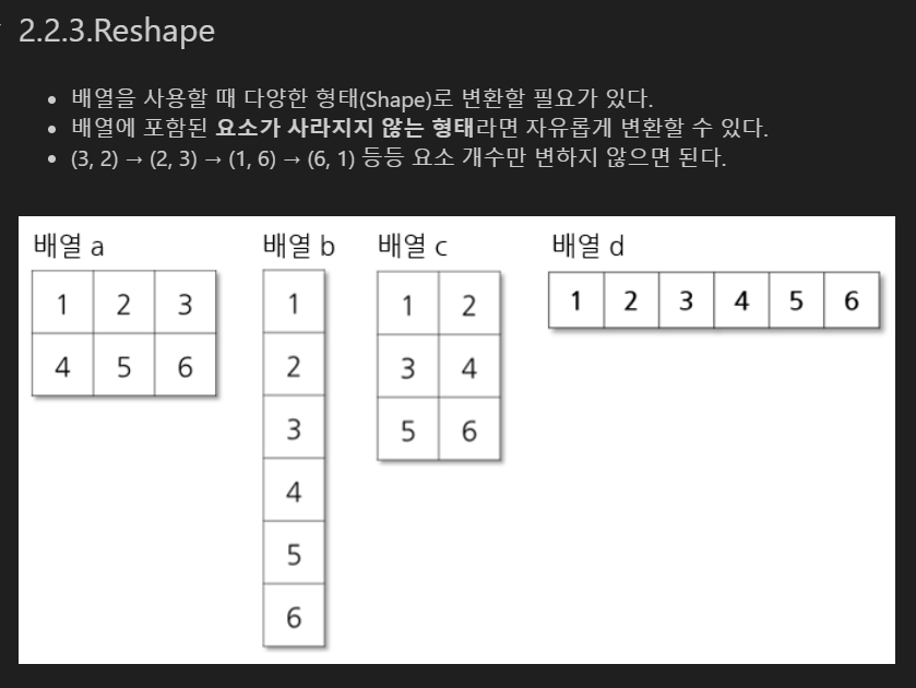 reshape 메소드 및 함수를 통해 기존 배열을 새로운 형태의 배열로 다시 구성