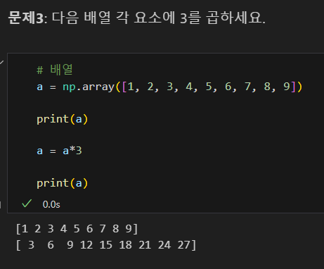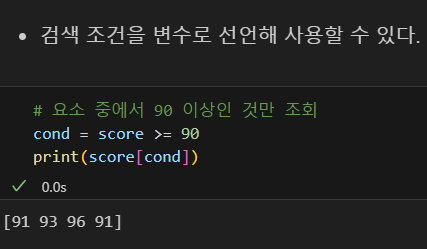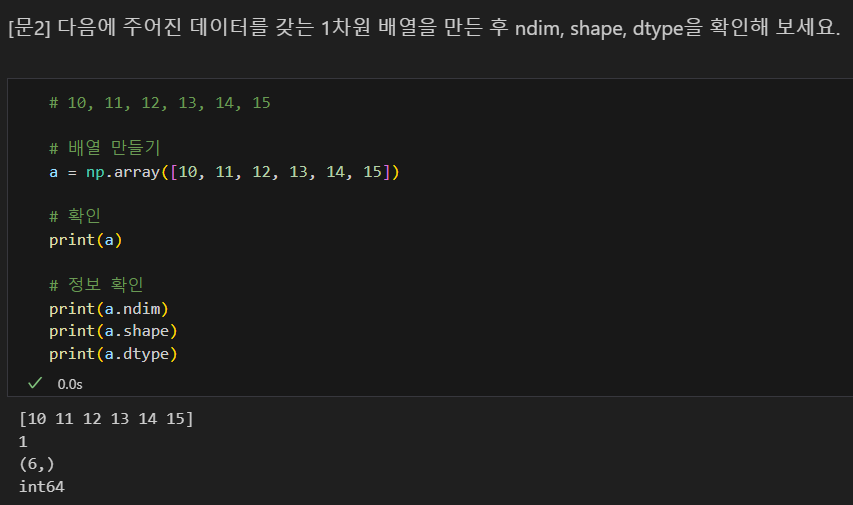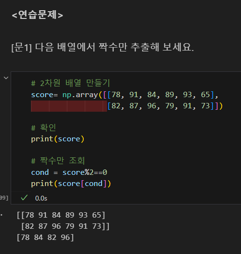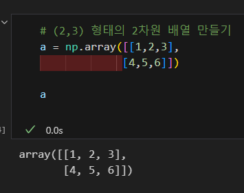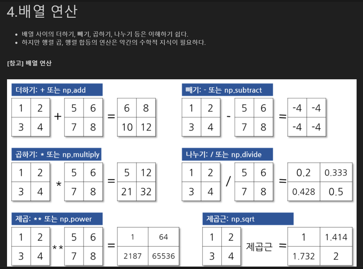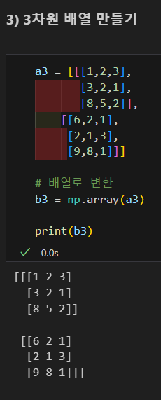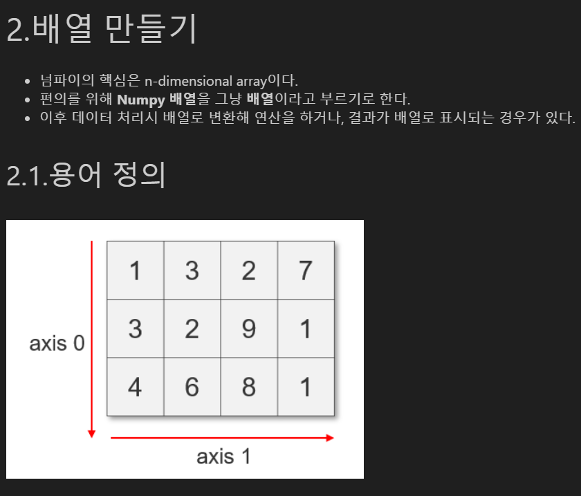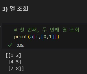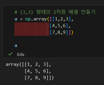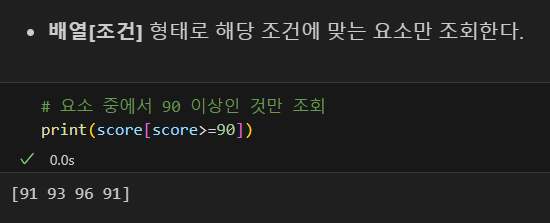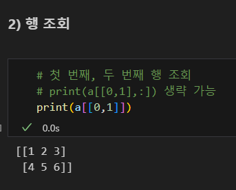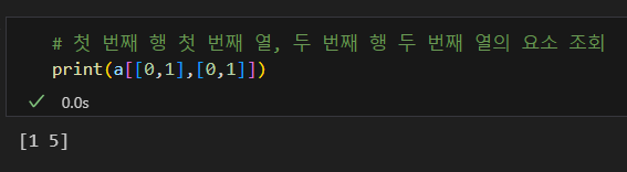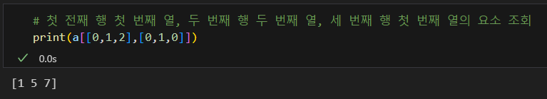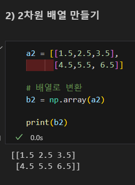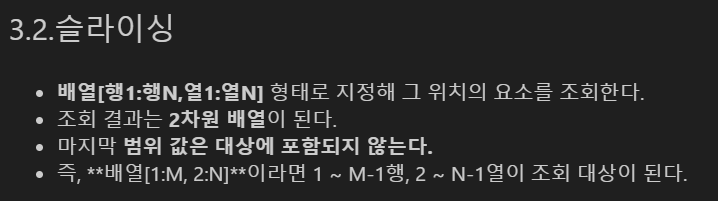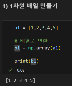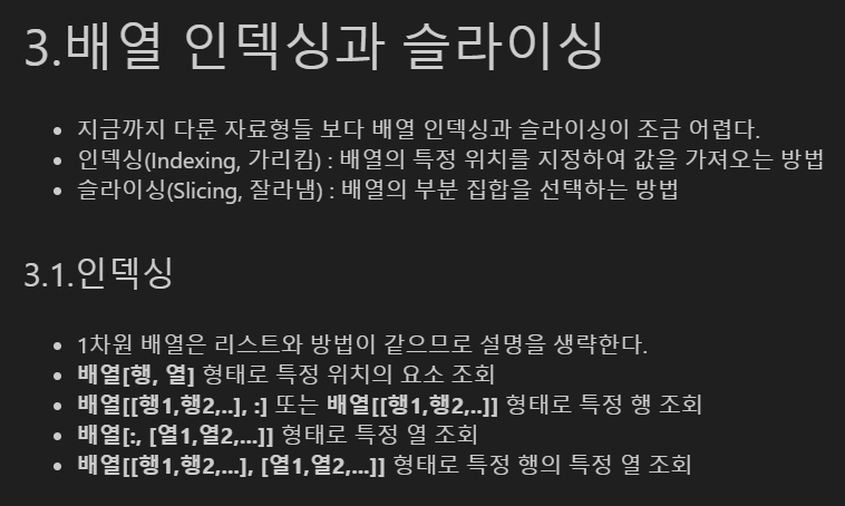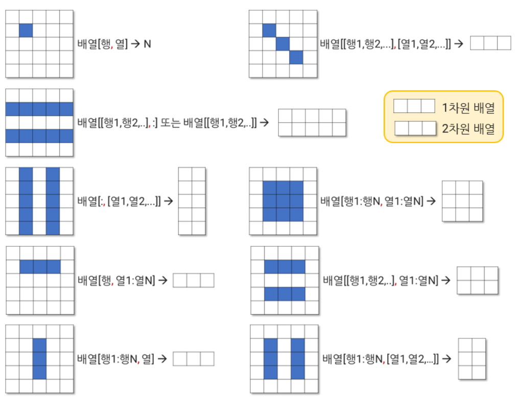 1차원 배열은 리스트와 인덱싱 방법 동일