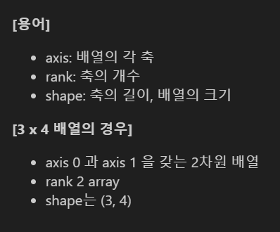 스칼라(0차원), 텐서(2차원 이상, 다차원), 벡터(물리에서 1차원. 물리에서 크기와 방향. 데이터 상에서 방향)