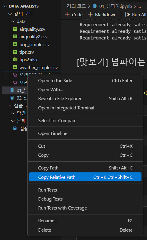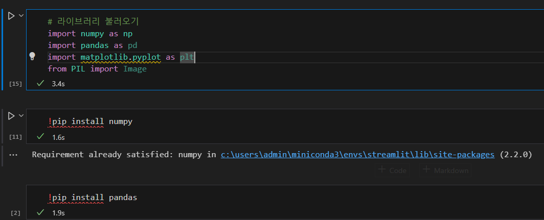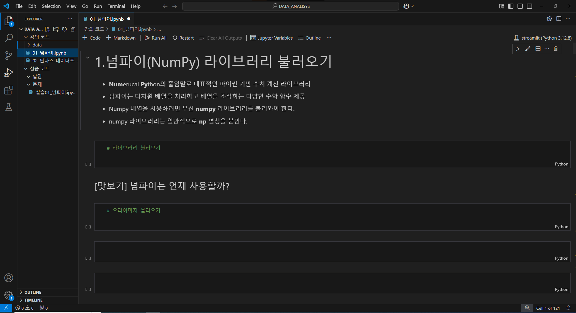 Open folder하여 파일 불러온 후, 예전에 만들어둔 커널을 미니콘다 가상환경(이름 Streamlit)으로 설정.