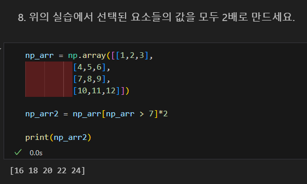 7보다 큰 숫자만 선택해서 모든 요소에 2 곱하기