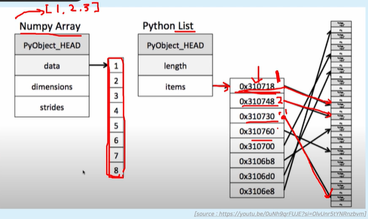 만들 때는 리스트로 만듦. 머신러닝 결괏값은 배열로 나옴.