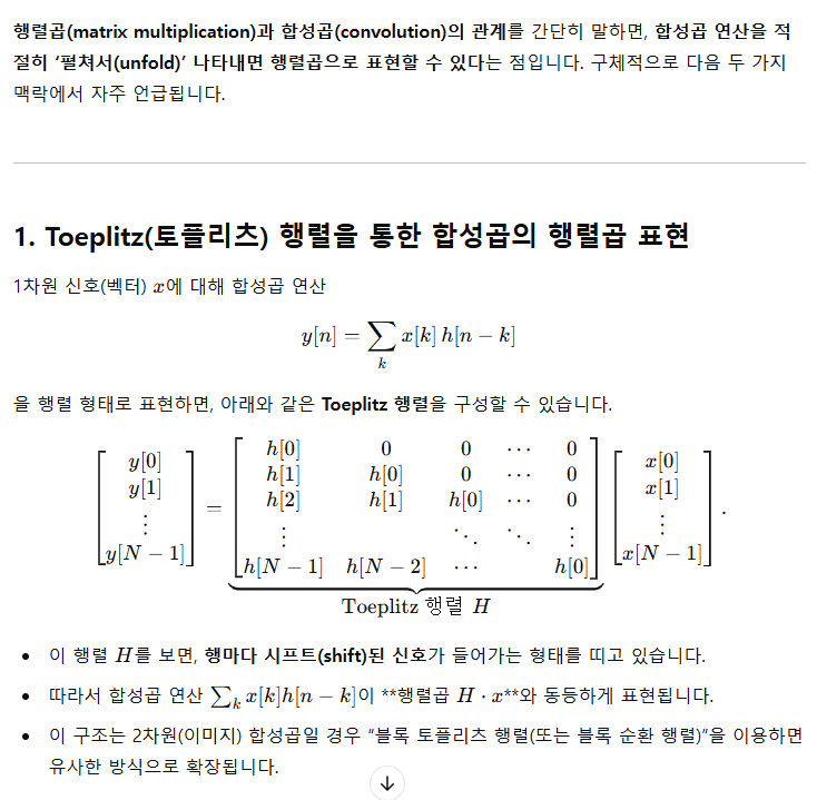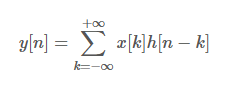 컨볼루션 연산: y[n]=k∑x[k]h[n−k]