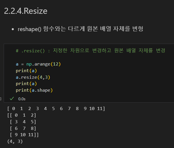 resize는 요소의 갯수가 달라도 0으로 채워서 변경 가능