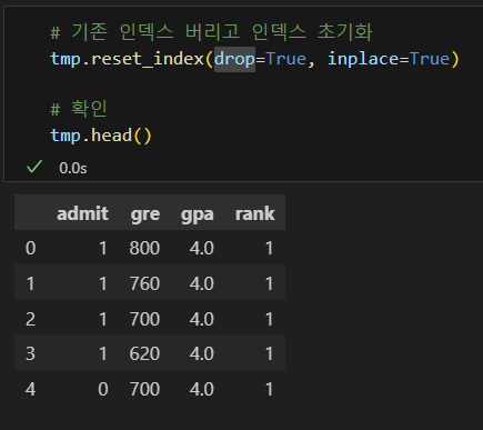 인덱스 초기화