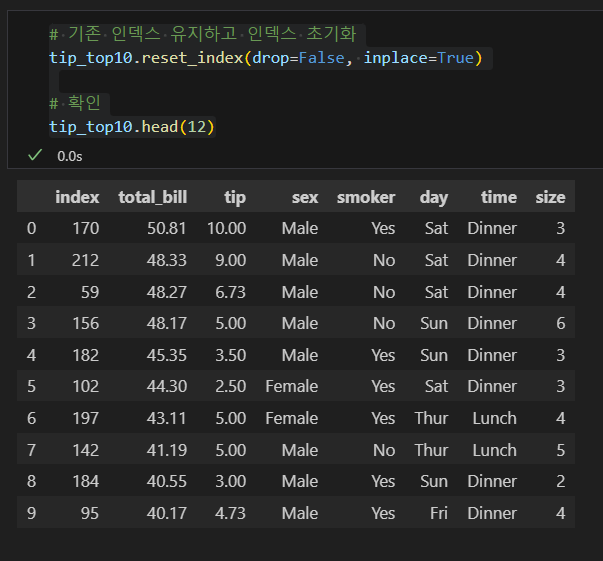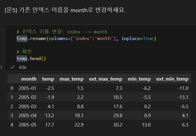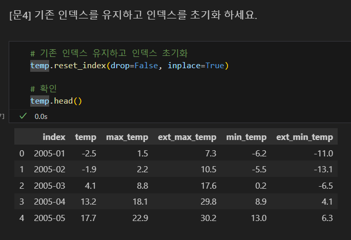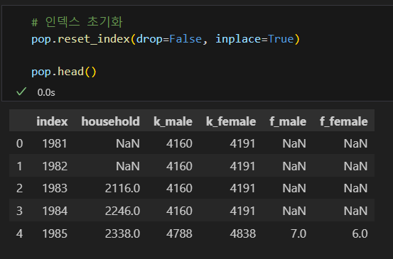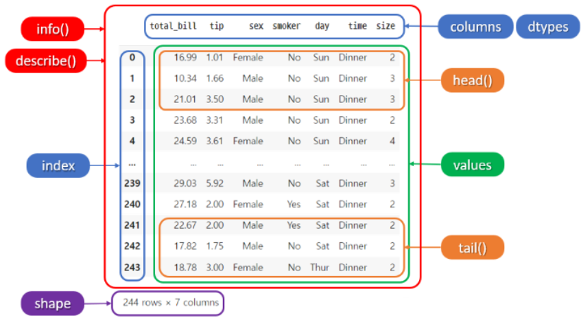 : 데이터프레임(행, 열) 크기 확인index