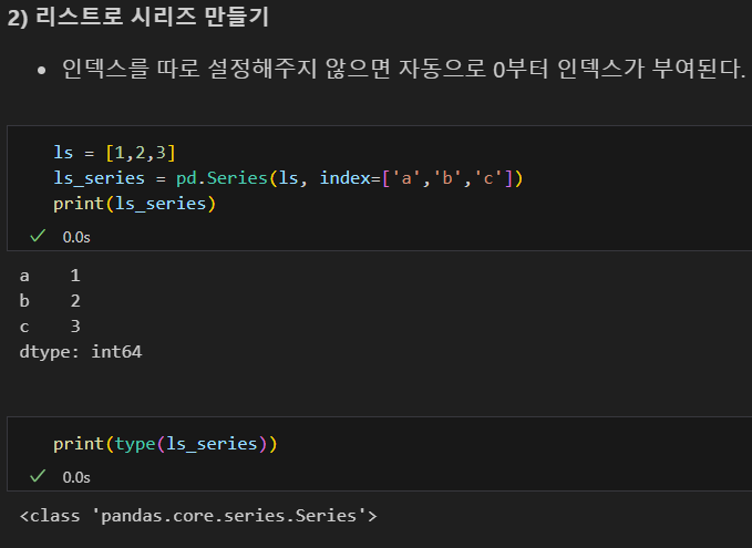 1차원 배열로, 데이터와 인덱스를 가지며 리스트와 유사