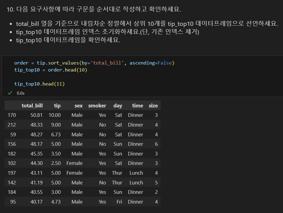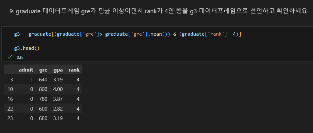데이터프레임 조회 실습