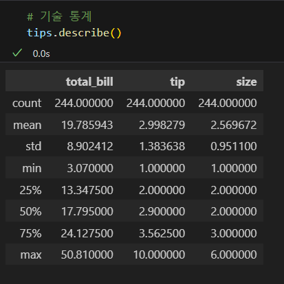 기술 통계 확인