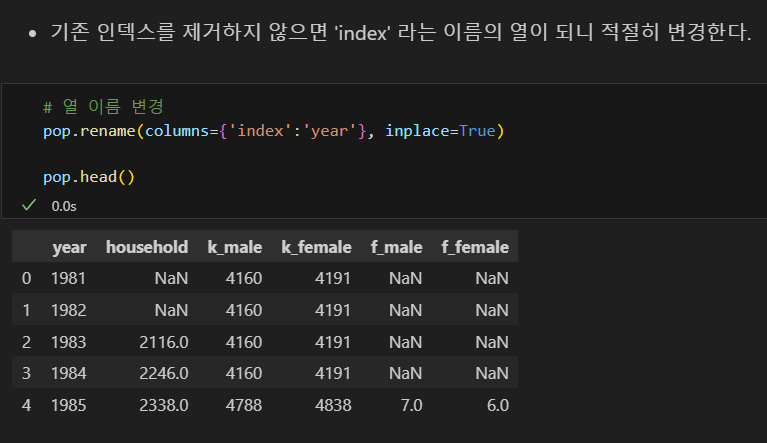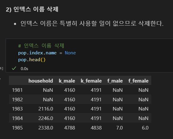 인덱스 열 이름 삭제