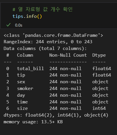 : 열 자료형 확인info()