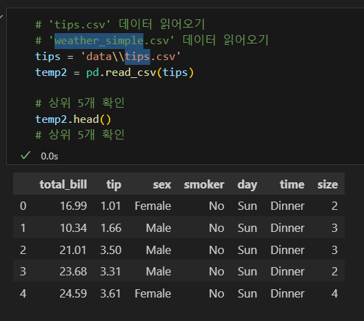 csv(Comma-Seperated Values) 파일 읽어오기