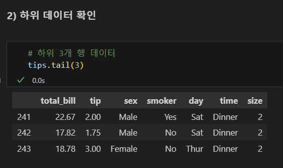 : 상위 데이터 확인tail()