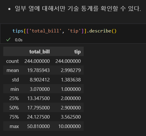 : 데이터프레임의 열에 대한 요약 정보 확인describe()
