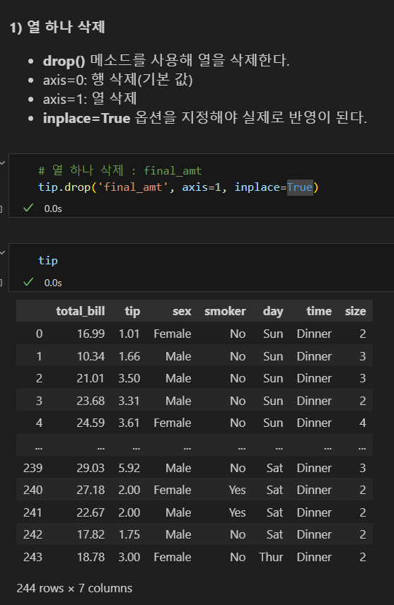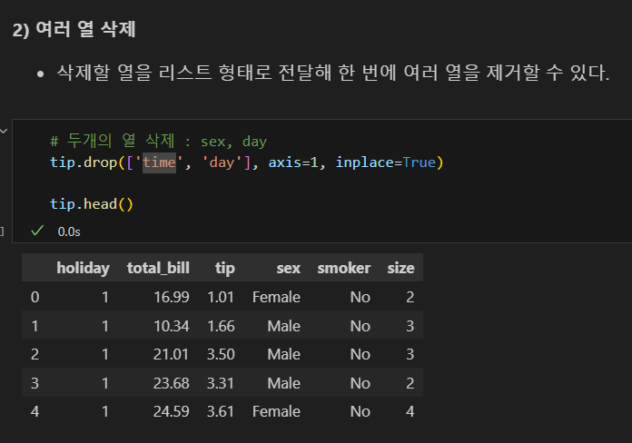 여러 열 삭제
