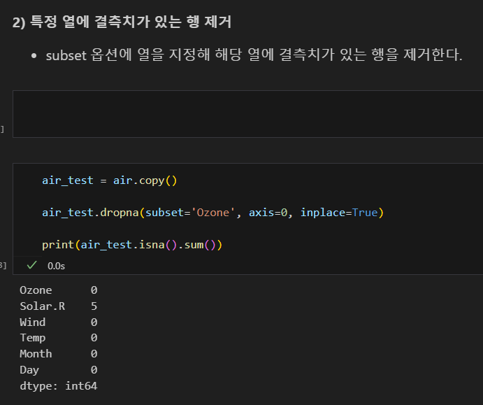 subset으로 특정 열에서 결측치 있는 행 제거